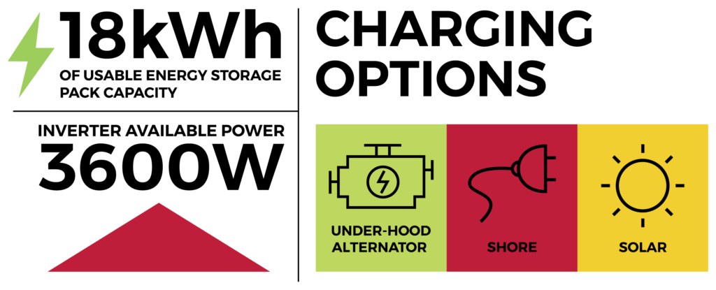 With this system, the owners have enough power to run all the appliances on the vehicle including A/C simultaneously for the better part of a day or fully through the night.