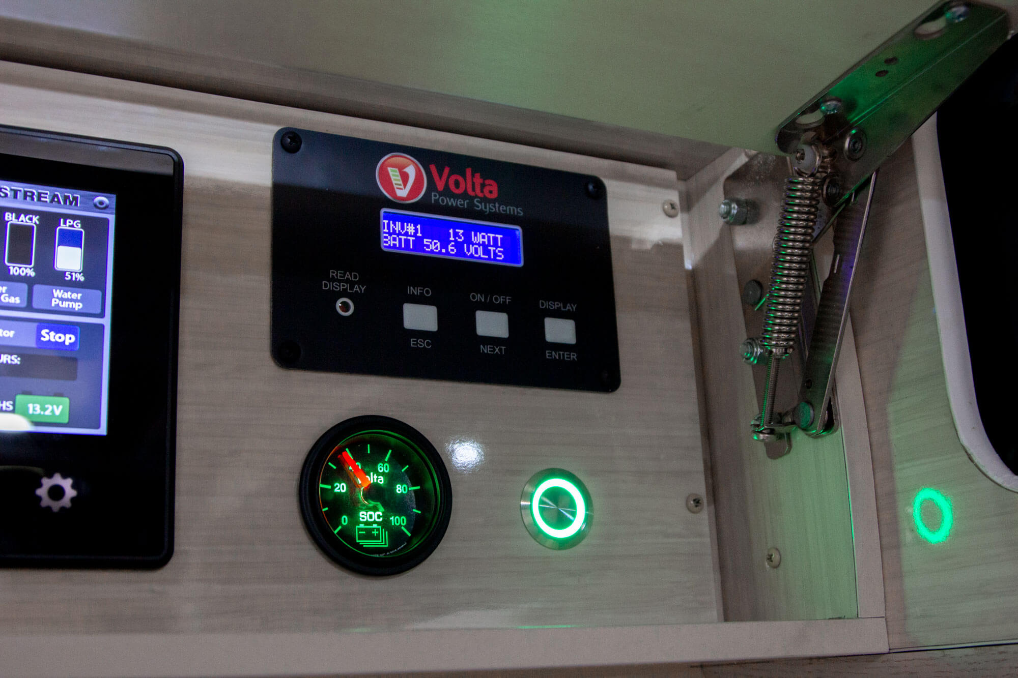 Part of the installation process included installing our custom made State of Charge (SOC) gauge, an easy-to-use on and off switch and an inverter display, all completed with a factory-installed look.